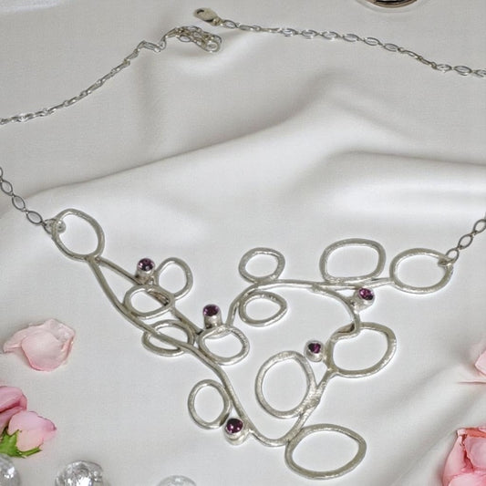 Scarlet Arbor -Sterling Silver Statement Necklace with Rhondolite Garnets