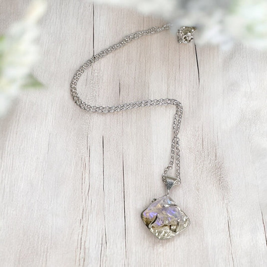 A Starlit Reverie-Sterling Silver Raw Opal Pendant Necklace