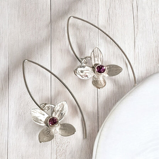 Eloquent Petals – Sterling Silver Earrings with Rhodolite Garnet