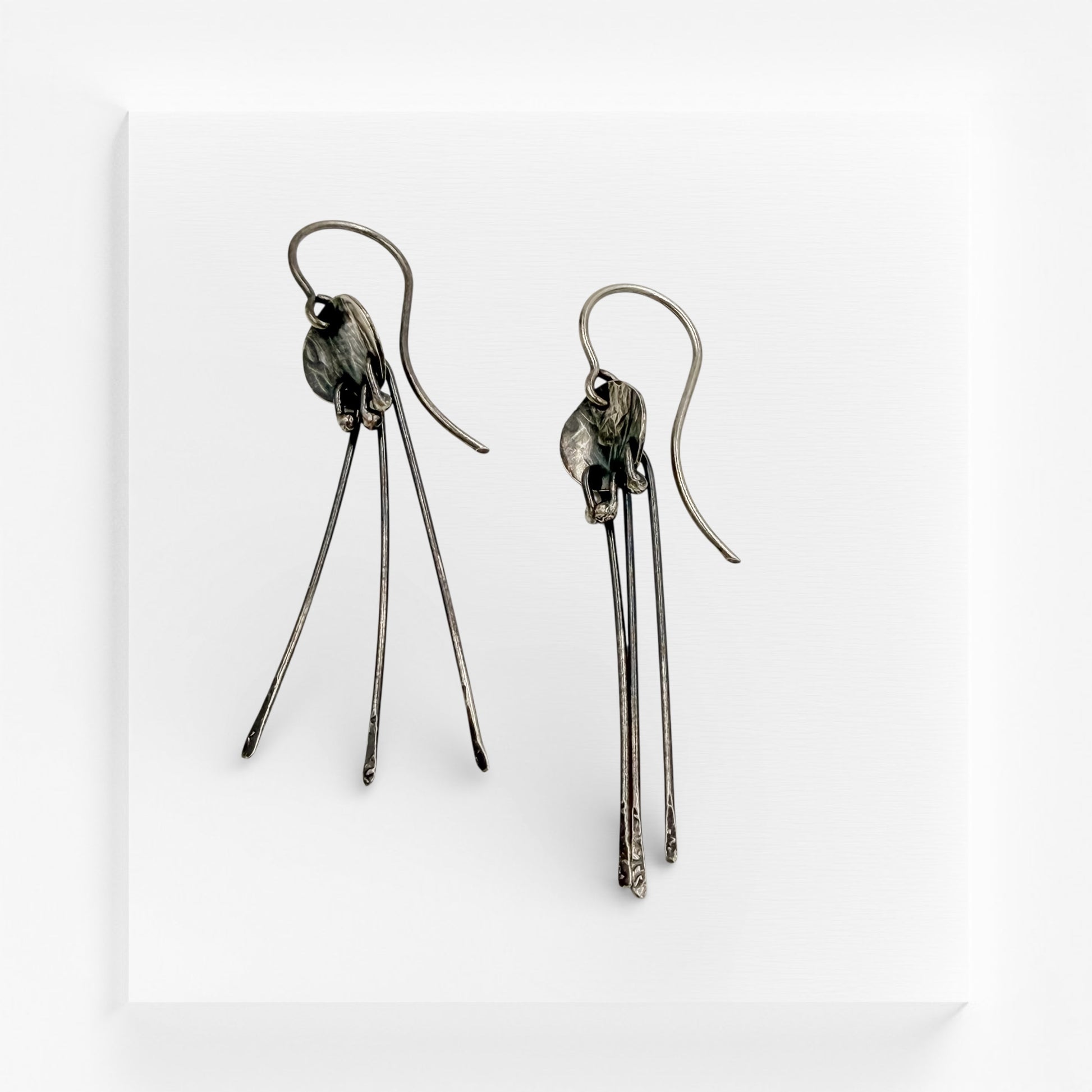Long sterling silver earrings with graceful movement and organic texture. Elegant and lightweight, they bring subtle drama while remaining comfortable for all-day wear.