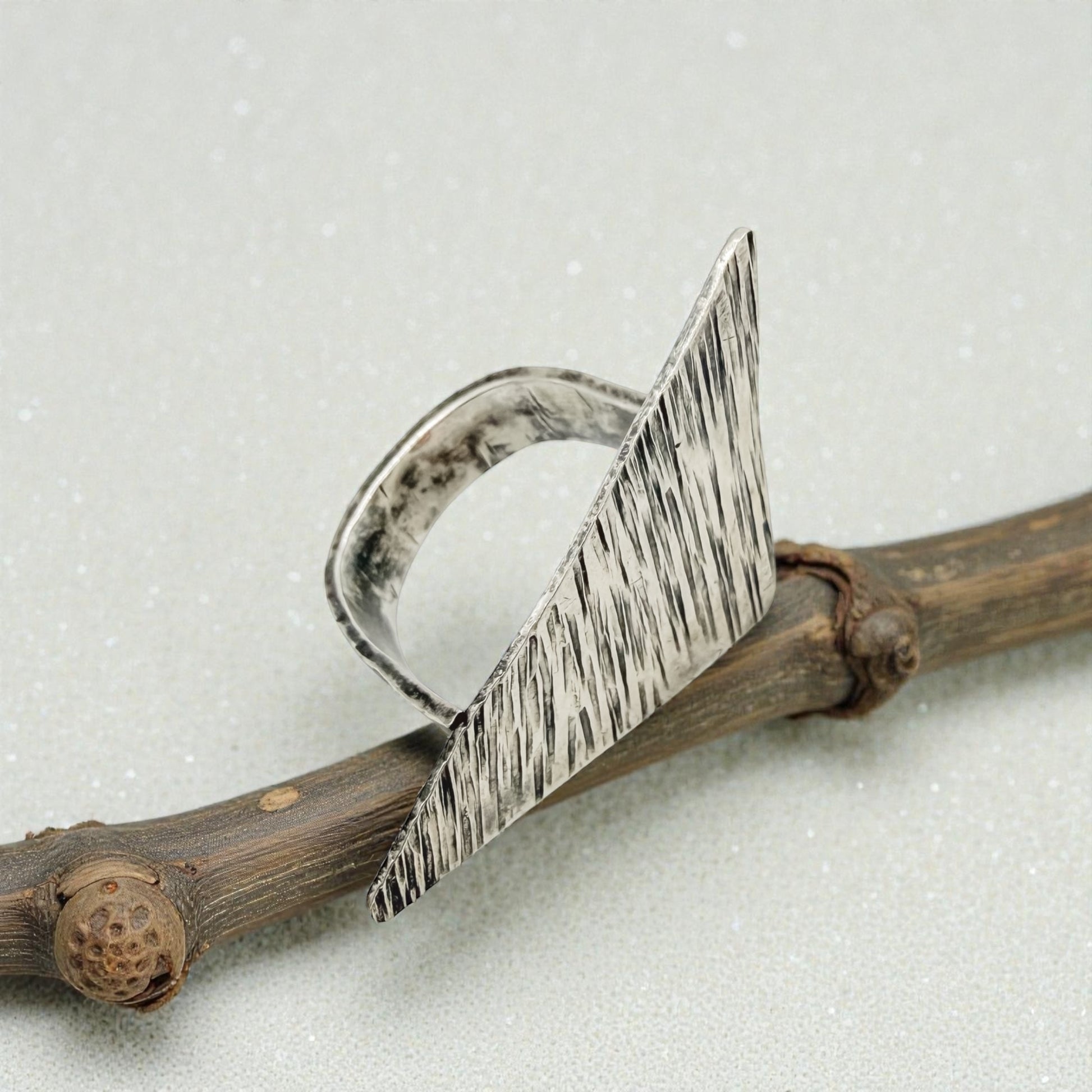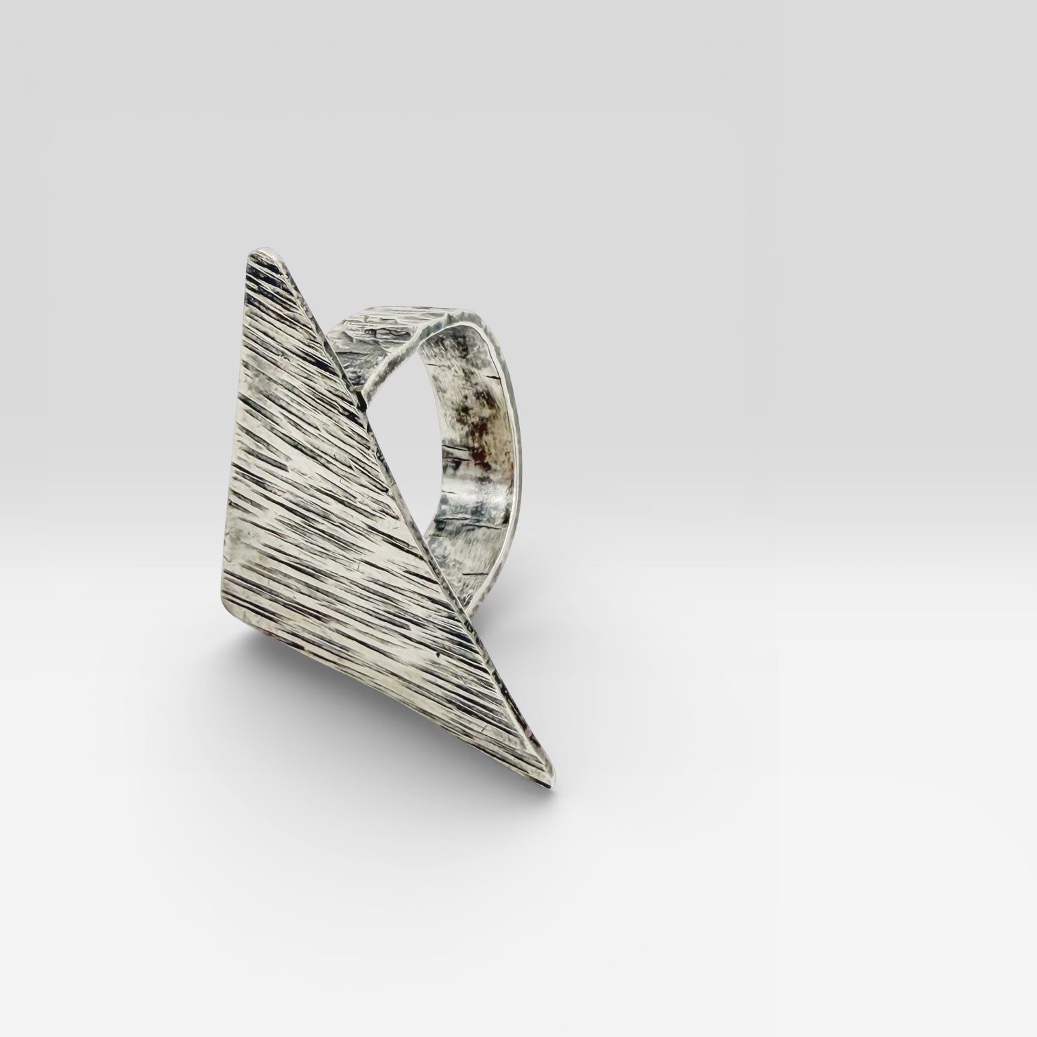 A sculptural sterling silver ring with bold, angular form and hand-carved surface texture. Inspired by elevated terrain and strong lines, the Summit Ring brings confident structure and modern presence to the hand. Perseverance, resilience, can overcome.